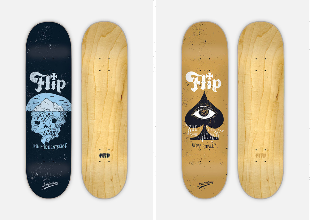 Signature series skateboard and t-shirt designs for Flip Skateboards featuring the majority of their current pro roster.